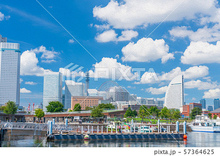 横浜 みなとみらい風景 水彩画風