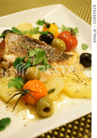 金目鯛のポワレ ブロッコリーのソースで ジャガイモのチーズ焼きを添えて