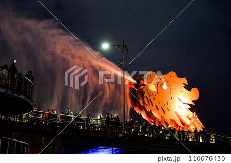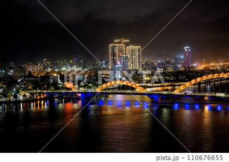 ダナン ドラゴンブリッジと街の夜景 Dragon bridge Vietnam Danang