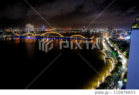 ハン川橋と街の夜景 ベトナム ダナン Dragon bridge Vietnam Danang