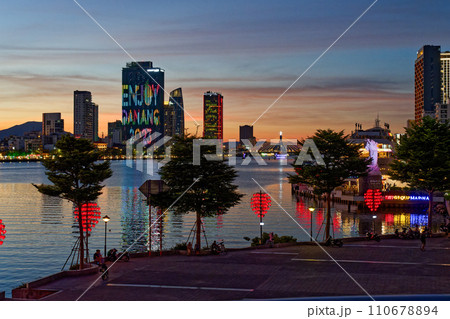 ドラゴンブリッジからのハン川と街の夕景 ベトナム ダナン Vietnam Danang