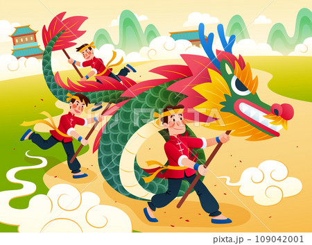CNY dragon dance illustration
