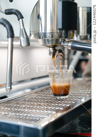 Professional Espresso Machine Brewing Fresh Coffee Shot