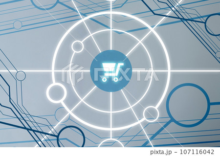 グローバルなビジネスのシステムやサイバー空間のイメージ ECサイトやネットでの買い物