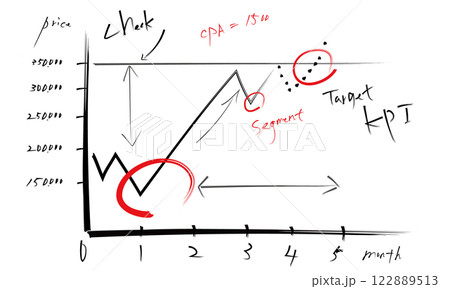 ホワイトボードなどに書く手描きのグラフ webやsns広告のマーケティングイメージ