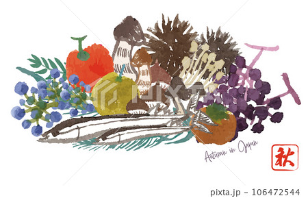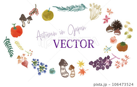 日本の秋の味覚 使いやすい水彩のベクター素材