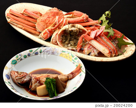 料亭の焼き魚と蟹