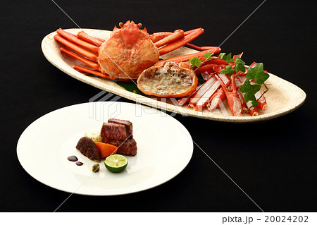 料亭の和牛ステーキと蟹