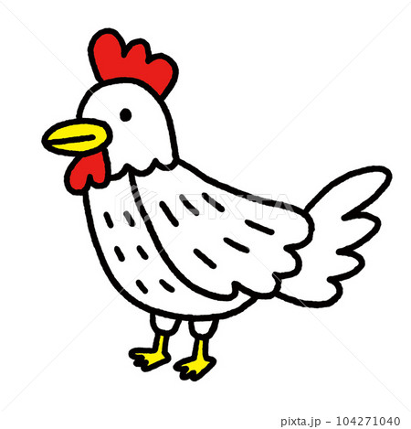 シンプルな線画のモノクロの鶏