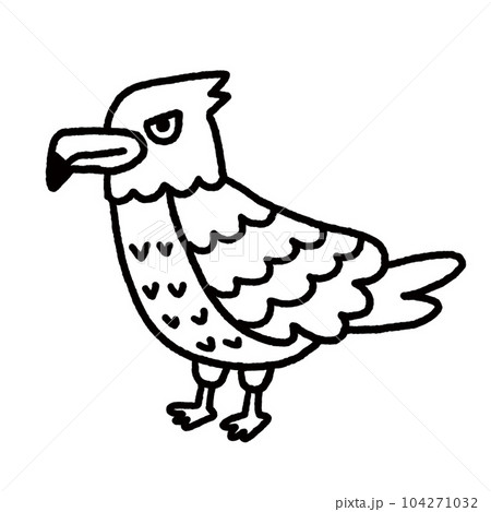 シンプルな線画の白黒の鷹