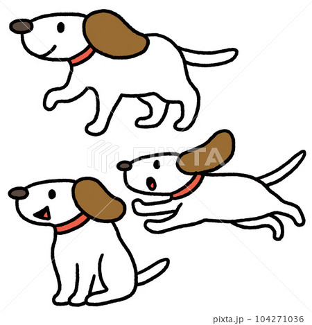 シンプルな線画の赤い首輪をした犬