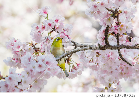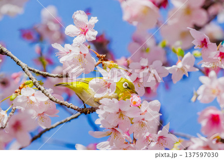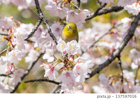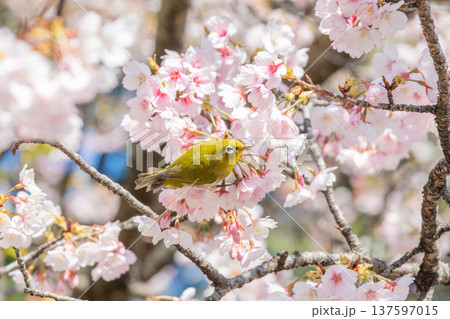 オオカンザクラとメジロ(愛知県名古屋市東区)