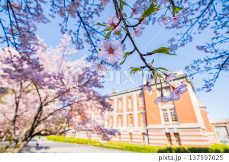 名古屋市東区のオオカンザクラの並木道(芳野二付近)