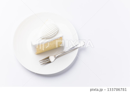 皿に盛られたケーキ ショートケーキ 白背景