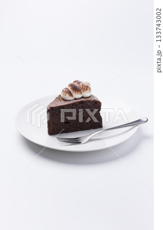 皿に盛られたケーキ ガトーショコラ 白背景