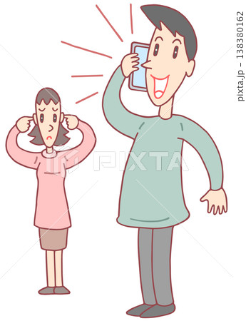 スマホ関連のイラスト - スマートフォン・大声・話し声・騒音・迷惑