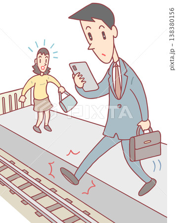 スマホ関連のイラスト - スマートフォン・歩きスマホ・介助要請・見過ごし