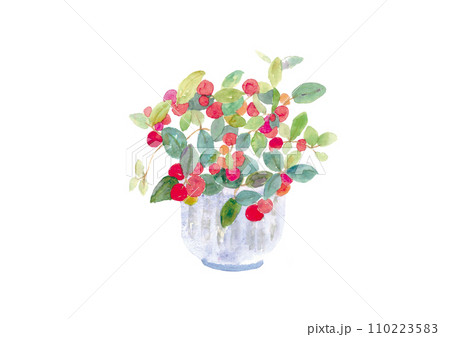 水彩で描いたぶどうのような実がついたつたのイラスト素材