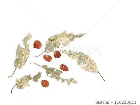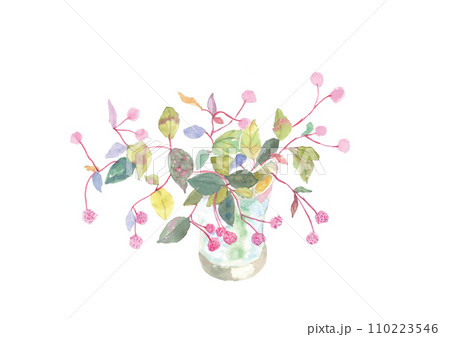 水彩画野草や桜の実やつるや野鳥の素材イラスト