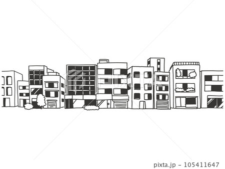 シンプルに線で描いた繁華街ビルの背景イラスト素材
