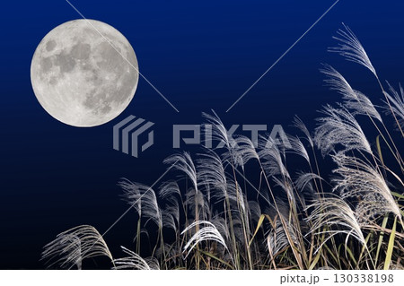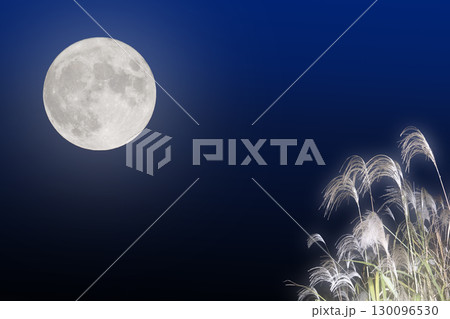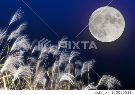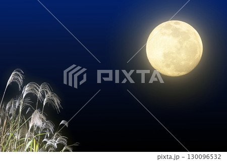 秋の月見イメージ。満月とススキ