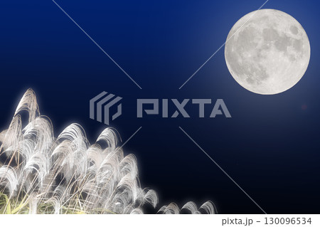 秋の月見イメージ素材。満月とススキの自然風景素材