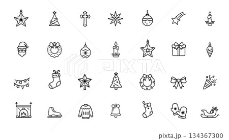 Christmas and New Year icon set concept. Holiday festive symbols minimal outline. Christmas packaging advertising branding flyer invitation website app print. Black thin line vector icons on white