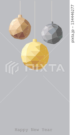 Geometric Christmas ball decoration. New Year holiday baubles low poly decorative spheres. Christmas greeting flyer poster invitation banner cover packaging branding. Illustration gray background