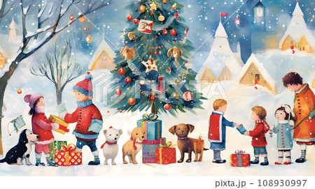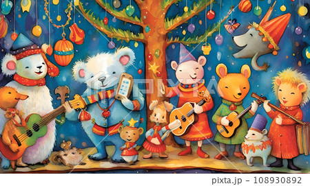 架空の国の動物たちのクリスマス プレゼントがたくさん