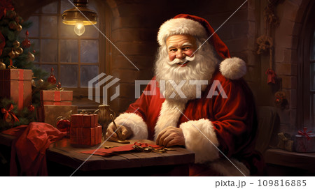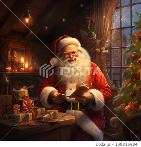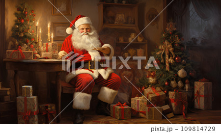 クリスマスのプレゼントのお願いの手紙を読むサンタクロース AI生成画像