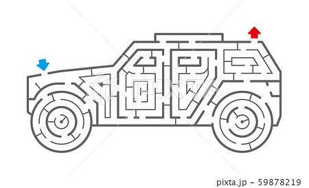 四輪駆動車の迷路(塗り絵)