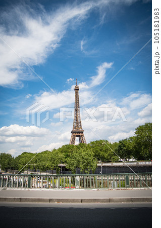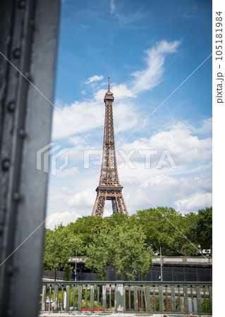 フランスパリのセーヌ川にかかるビルアケム橋から見えるエッフェル塔