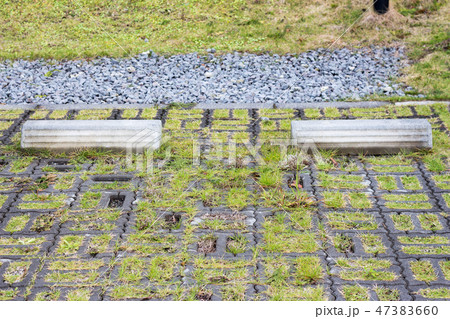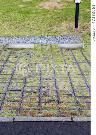 芝生の駐車場の車止め