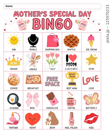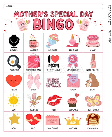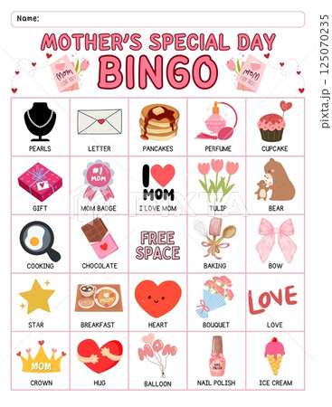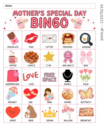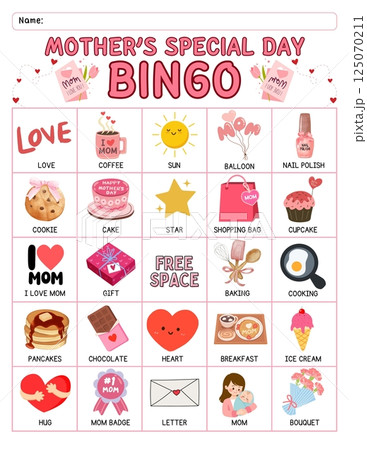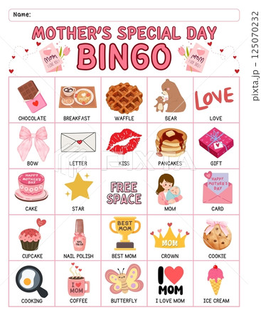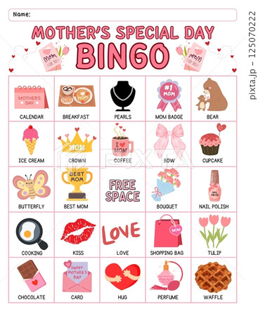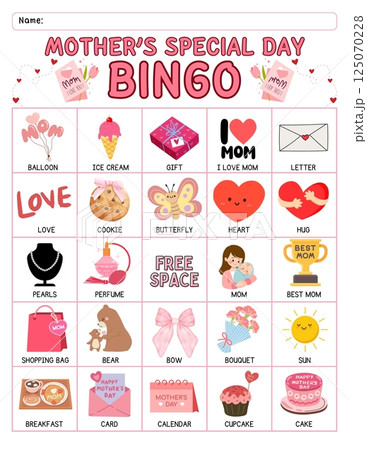 Mother's Day bingo game for kids with colorful printable cards, calling cards, and cute designed for preschool and classroom homeschool activity educational learning fun during springtime