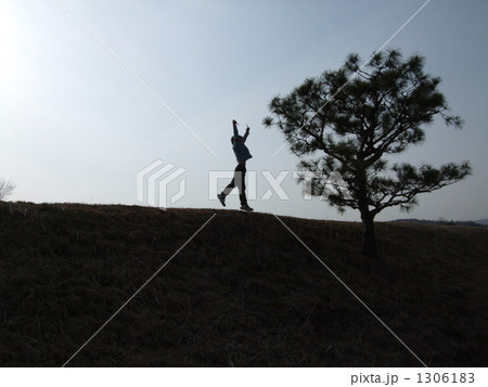 丘を歩く少年