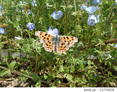 キタテハとネモフィラ