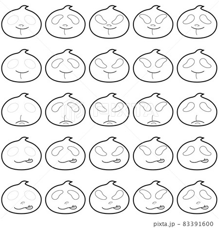 ハロウィン用に使えるシンプルなオバケのいろんな表情を組合わせた線画イラスト集1