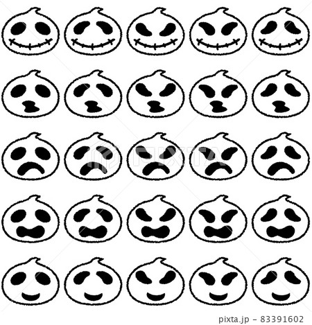 ハロウィン用のジャック・オー・ランタンのシンプルでいろんな表情を組み合わせた手描き風イラスト集4