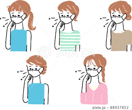 コロナ禍で体調不良の症状があるマスクをしている複数の女性のシンプルなイラスト