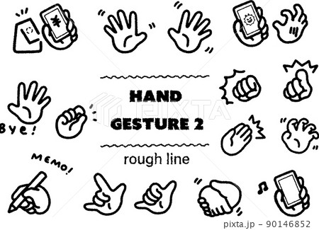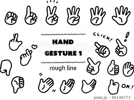 白黒のラフで柔らかい線画のハンドサインのベクターイラストセット