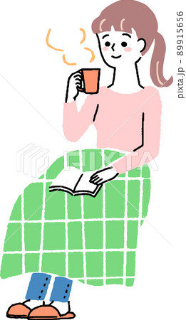 健康的な生活を送る在宅ワーカーの若くて綺麗な女性のシンプルで可愛いイラスト