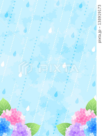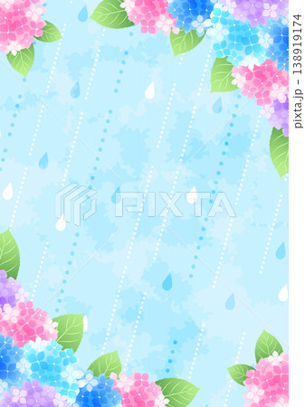 梅雨背景、縦、かわいい、あじさい、雨、対角囲み