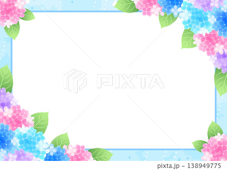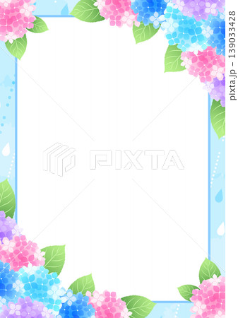少女漫画風あじさい背景、囲み、かわいい、イラスト