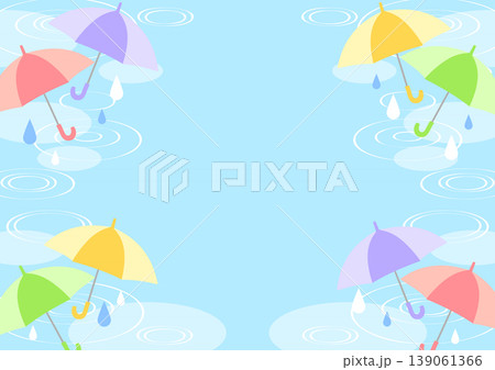 梅雨背景、傘、青、水たまり、かわいい、横