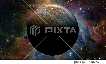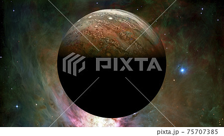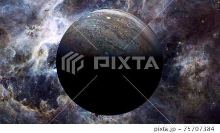 View of Jupiter, the fifth planet of the Solar System, with nebula. Elements of this image furnished