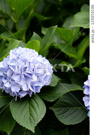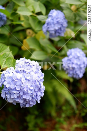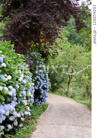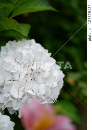 Flowers of large-leaved hydrangea. Pink and blue hedge of hydrangea. Garden flowers