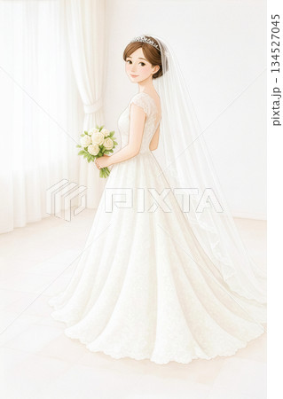 白いウェディングドレスの花嫁イラスト