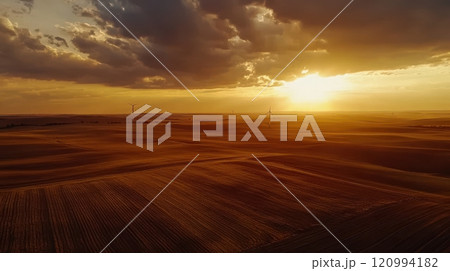 Witness the Gorgeous and Beautiful Golden Sunset Spreading Over the Vast Farmland Landscape