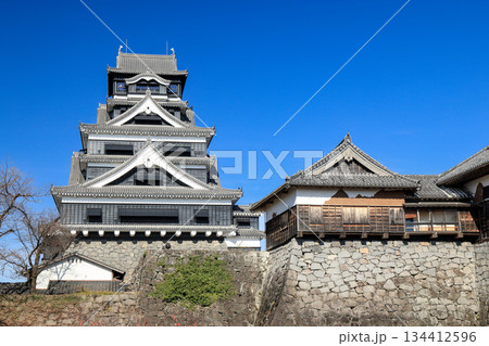 熊本城 南門特別見学路から望む二様の石垣本丸御殿と天守閣