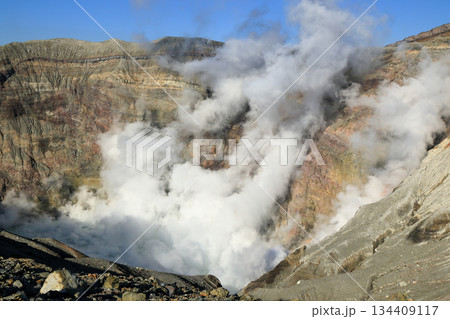 阿蘇山 阿蘇中岳噴煙を上げる火口